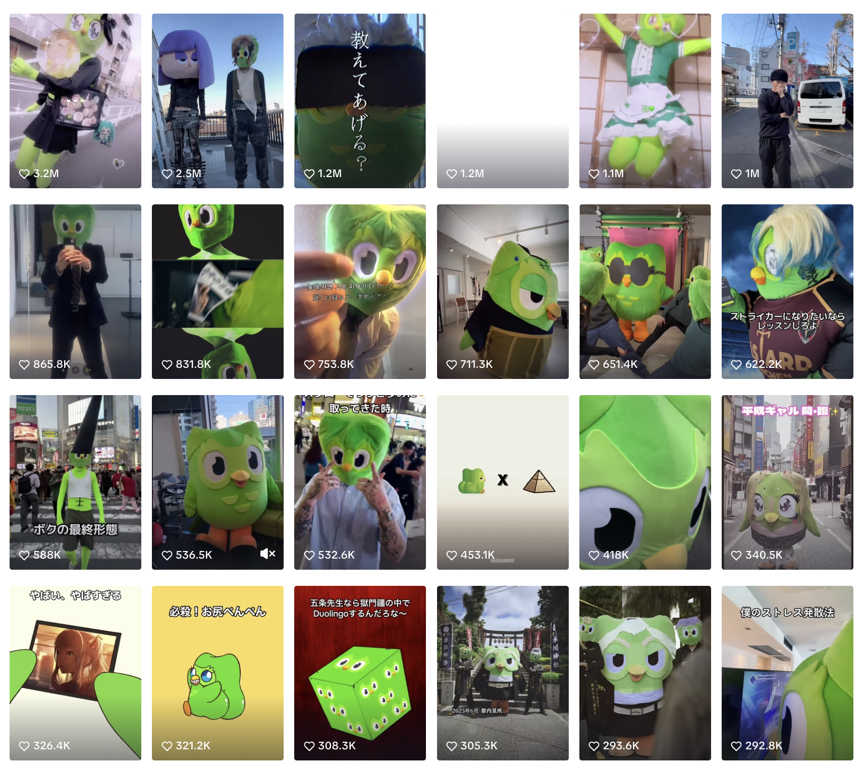 Dancing trends. Cat memes. Unhinged gyaru teenagers with eye highlighter brighter than their future. With my team, we always see something funny there to do with Duo to be a more dramatic owl everyday. From 2023, I was in the core team that launch the TikTok account for Duolingo in Japan. Many challenges were faced, including the unique social content taste in Japanese market, the algorithm, the fierce competition with other cute IPs (we are still the cutest, though!)